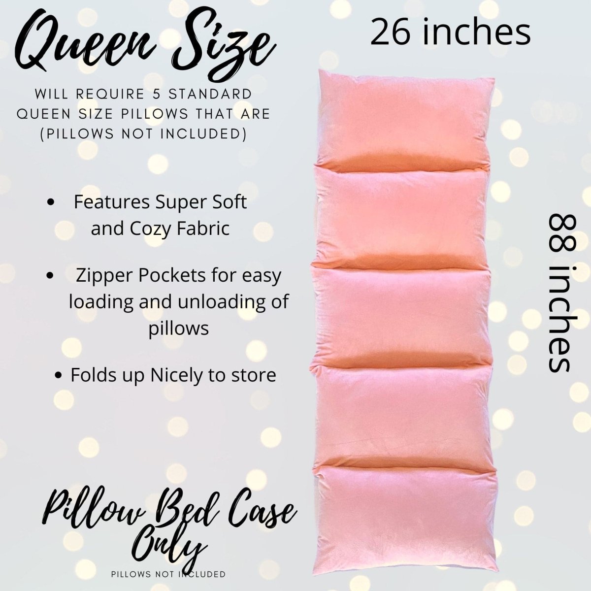 🛏ï¸?Kids Pillow Bed Case (Pillows not included)- our pillow bed case provides a great place to take a nap. It is easy to setup by adding 5 of your own queen size pillows- one into each zipper pocket and viola you have a cloud like bed perfect for children.